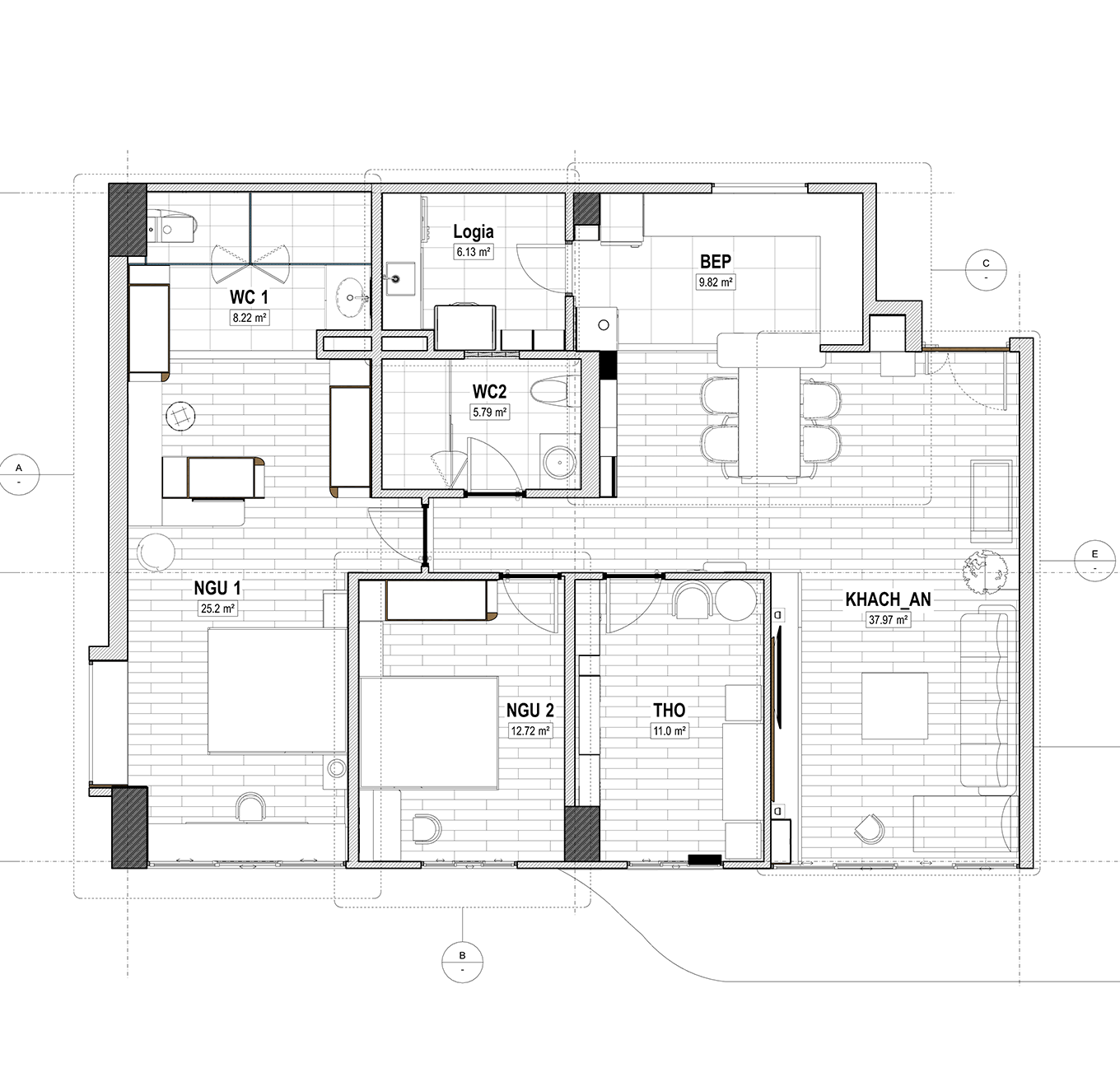Được định hướng như một quá trình tái cấu trúc không gian nhằm nâng cao chất lượng sống thông qua việc tối ưu công năng và cá nhân hóa trải nghiệm sử dụng. Thay vì giữ nguyên mặt bằng ban đầu, thiết kế tập trung điều chỉnh lại bố cục để phù hợp hơn với nhu cầu sinh hoạt thực tế của gia chủ, đồng thời tạo ra sự liên kết mạch lạc giữa các không gian.