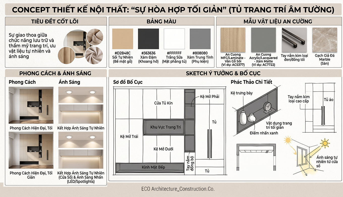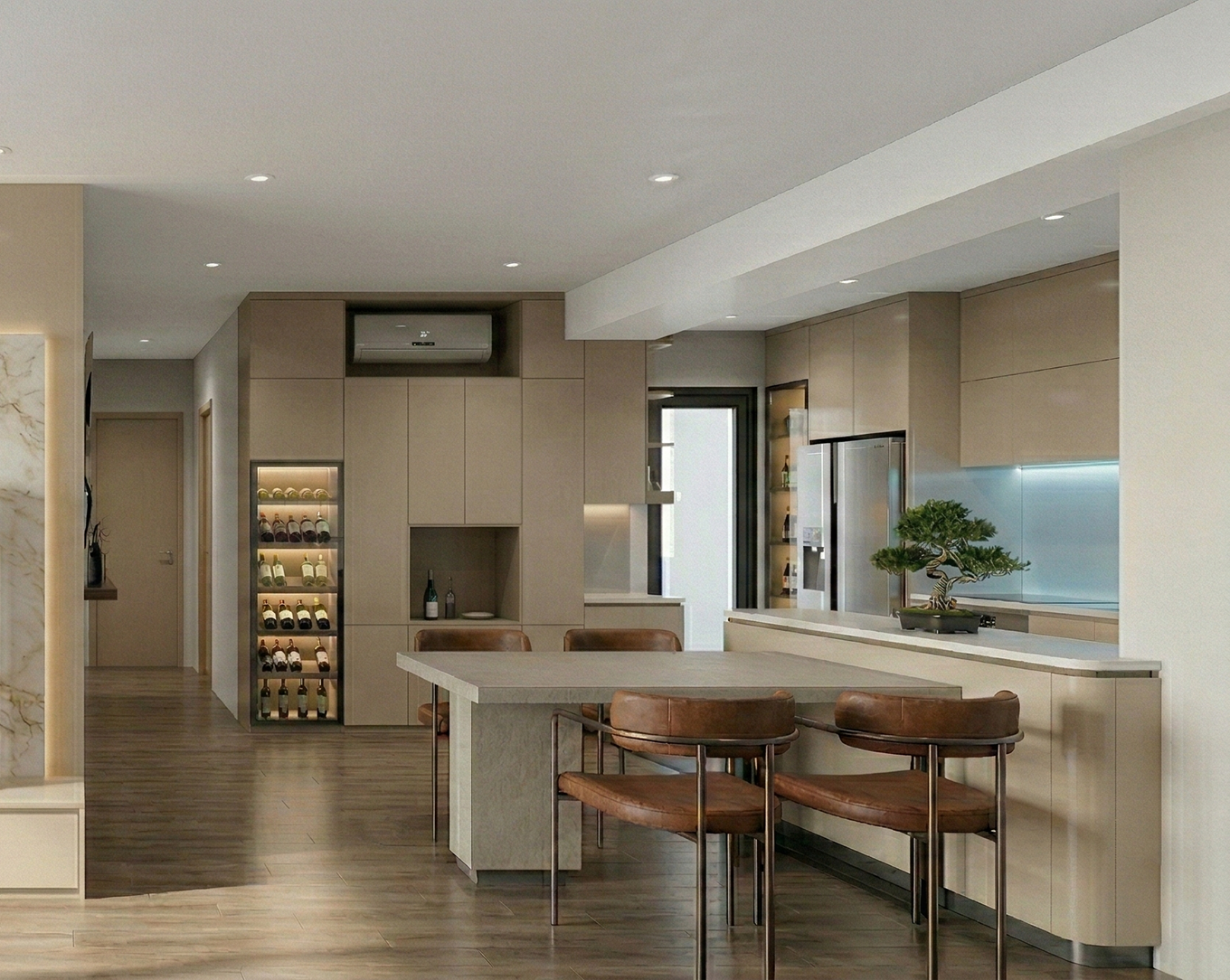 Ngôn ngữ thiết kế hướng đến sự hiện đại, tiết chế và linh hoạt, cho phép mỗi khu vực trong căn hộ phản ánh rõ nét nhu cầu và cá tính của người sử dụng. Thông qua việc lựa chọn vật liệu, ánh sáng và tổ chức không gian, dự án mang lại một tổng thể hài hòa giữa thẩm mỹ, công năng và tính cá nhân hóa trong không gian sống đô thị